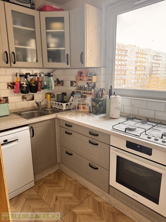 A lakás a 5. emeleten helyezkedik el, világos és jól atszellőztethető.