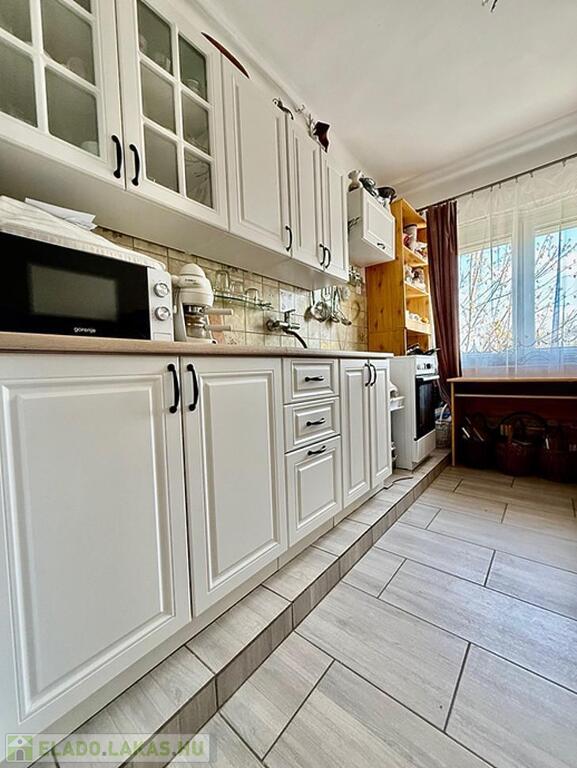 Az ingatlan egy három lakásos 80-as években épült téglaépítésű szigetelt ház, 1. emeletén található.