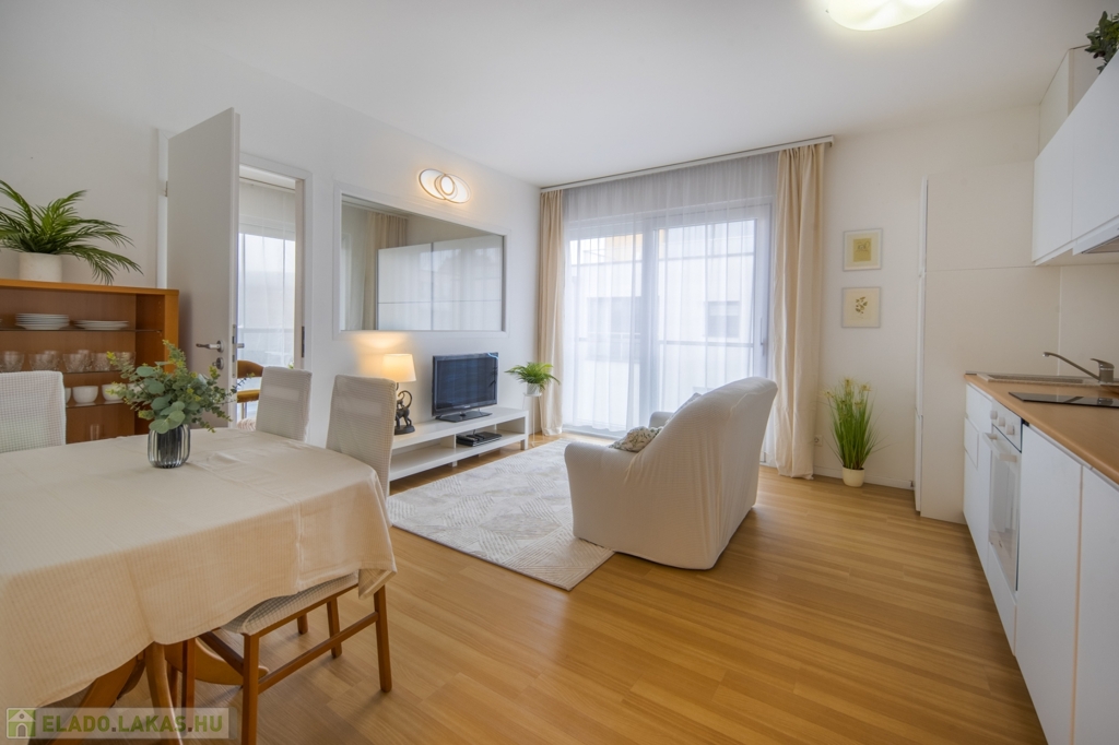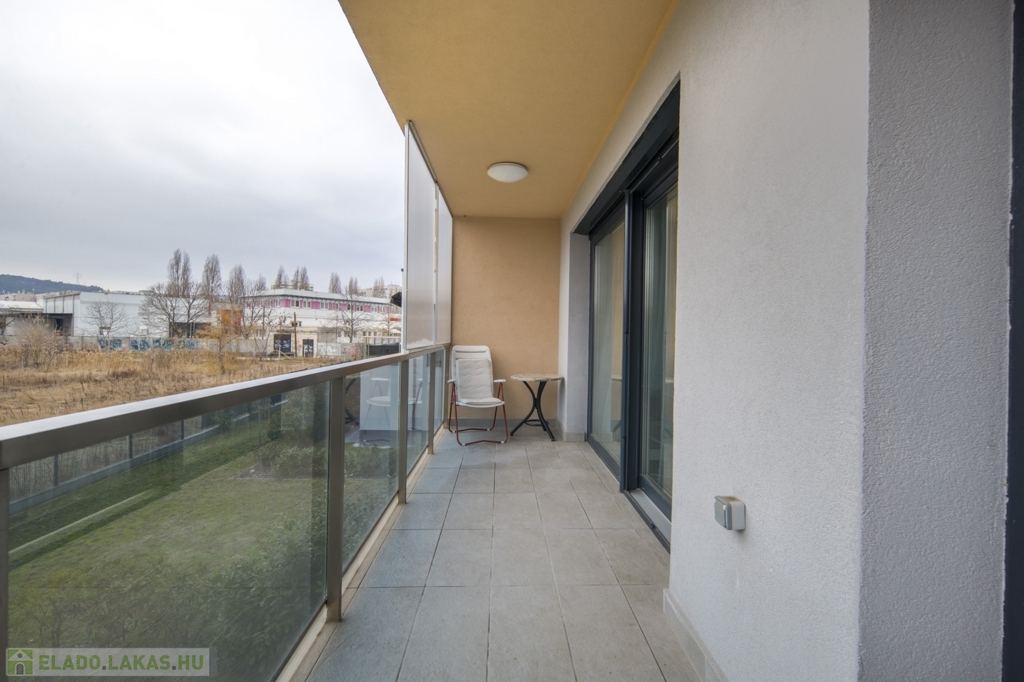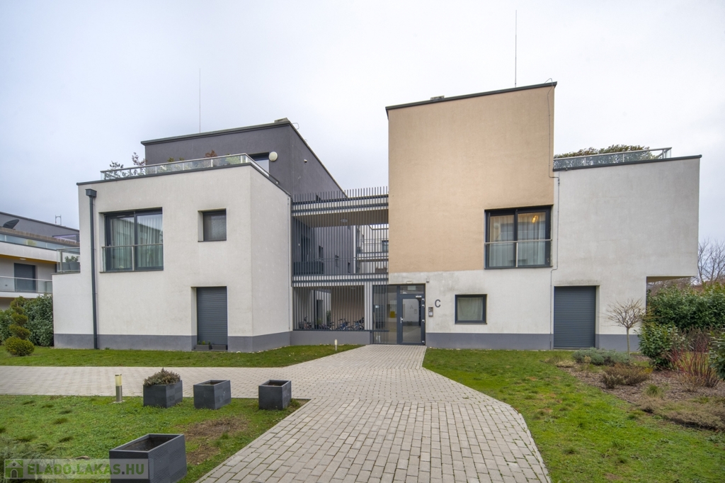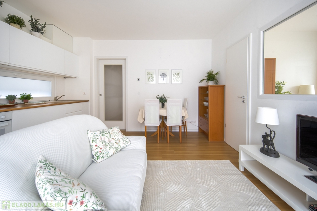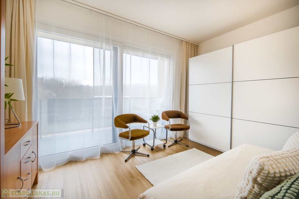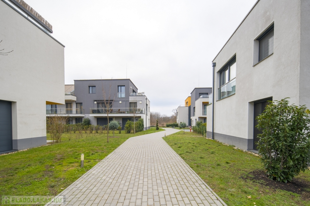 2022-ben épült, 15 lakásos társasházban, a Csillaghegy Residenceben 50 m2 alapterületű, plusz 9,5 m2-es terasszal rendelkező, nyugati fekvésű, nappali 2 hálós, 2 fürdőszobás, újszerű állapotban lévő lakás eladó. Minden rezsi egyedi mérésű: a hőszivattyús rendszerrel működő mennyezeti hűtés-fűtés és a padlófűtés hőmennyiségmérővel mért, gáz nincs az épületekben. A konyha mosogatógéppel és hűtővel is felszerelt, a két fürdőszoba zuhanyzós és WC-s.