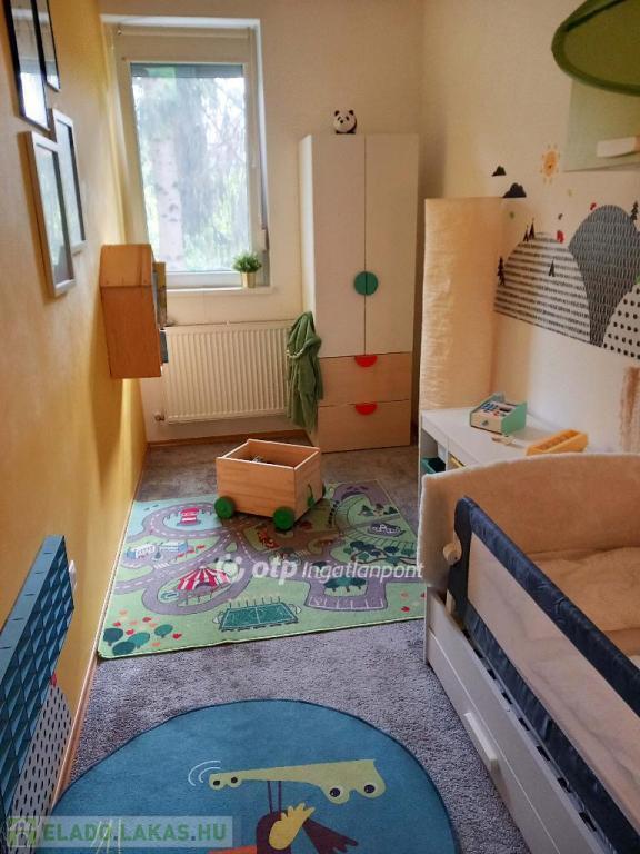 A lakás egy jó állapotú, folyamatosan karbantartott, 6 lakásos társasház félemeletén helyezkedik el. A gondozott kertben kiépítettek egy homokozót, és nyaranta grillezni is lehet.