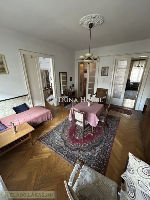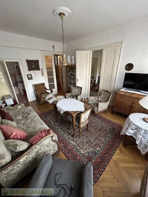 a Kassai utcában kínálunk megvételre egy 109 nm-es polgári lakást kis létszámú társasházban!A lakás 3 + fél szobás, 2. emeleti, erkélyes, lakható állapotú, de a mai kornak megfelelően modernizációra szorul.A lakásba lépve az előtérbe jutunk, ahol beépített szekrények találhatóak és innen nyílik az udvarra néző szoba, a konyha, a hall, valamint a Wc. A hallból nyílik a másik két, utcára néző és a nagy erkéllyel kapcsolódó szoba, melyek egymásból is, de külön-külön is megközelíthetőek. A hallból juthatunk a fürdőszobába, ahonnan közvetlen bejárat van az egyik szobába is. A lakás teljesen körbejárható, de jól szeparálható is. Kétirányú tájolásának köszönhetően világos, napfényes.Az előszobából nyílik a konyha, valamint egy félszoba, melyek az udvarra néznek.A konyhában külön kamra is található.Mind a kamra, mind a Wc, mind pedig a fürdőszoba is világos, egy lichthofra nyílnak az ablakai.Fűtése gázkonvektoros, az egyik szobában található egy cserépkályha is. A lakáshoz tartozik a padláson egy kb. 14 nm-es saját tároló, valamint a zárt udvarban minden lakáshoz egy felszíni autóbeálló.A 9 lakásos társasház lakói barátságosak, csendesek. A ház pénzügyi helyzete rendezett.A gáz felújítása a házban megtörtént, a kéményt kibélelték.Az ingatlan 1/1 tulajdonú, tehermentes, rövid időn belül birtokba vehető!Akár saját lakásnak keres egy klasszikus, jó adottságú polgári lakást, akár irodai célra, vagy rendelőnek szeretné, kérem jöjjön el és nézze meg ezt a nagyszerű lehetőséget!