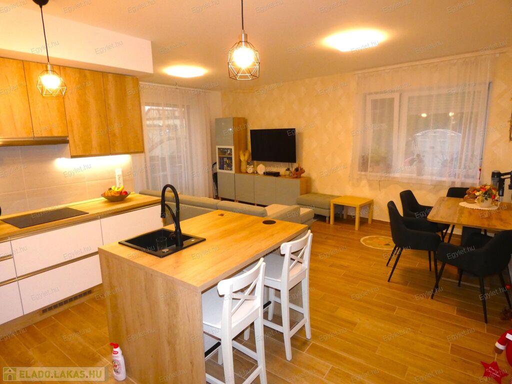 Eladó a 4. kerületben, Újpesten egy szinte új, 2023-ban átadott, kertkapcsolatos, kitűnő állapotú, földszinti, HŐSZIVATTYÚS, rendezett gazdasági viszonyokkal rendelkező társasházban lévő, 3 szobás, teraszos, 68 m2 -es, téglalakás. A lakás nagyon jó elosztású, szellős, világos terekkel, három teljes értékű szobával. Az ingatlan házközponti fűtéses, egyedi mérőórával van ellátva, mint ahogy a többi közmű is külön mérőórával rendelkezik. Az ingatlan fűtéséről és hűtéséről egy innovatív levegő-víz hőszivattyú gondoskodik, így télen, nyáron egyöntetűen kellemes a hőmérséklet. Mindezt egy NGBS Icon vezérlővel irányíthatjuk, akár telefonról is, mely akár egy okosotthon rendszerbe is integrálható.
