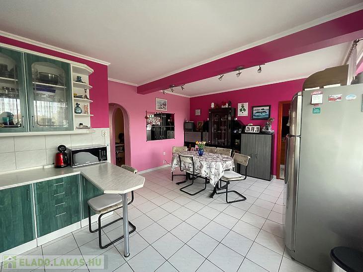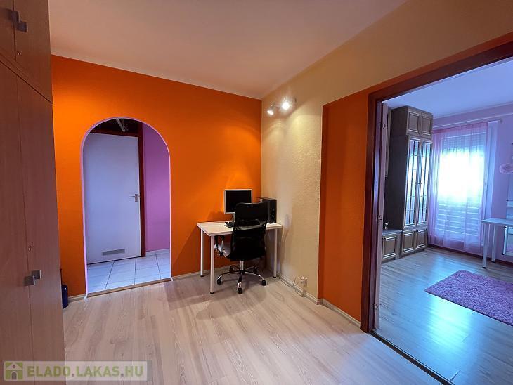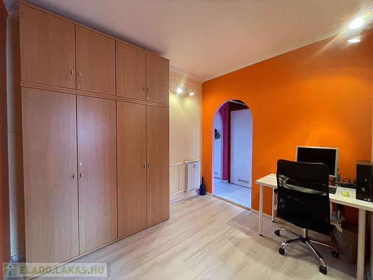 Káposztásmegyer I.-en, három emeletes cseréptetős társasház III. emeletén, 80nm-es, amerikai konyha + 2+1félszobás lakás eladó, két franciaerkéllyel. Az ingatlan közepes-jó állapotú, a nappali-konyha járólapos, a többi helyiség laminált parkettás. A nyílászárók műanyag thermo üvegesek, redőnyösek, részben szúnyoghálósok. A konyhabútort és a radiátorokat kicserélték, a fürdőszobát és a wc-t újra burkolták, új kádat szereltek be. A bejárati ajtó több ponton záródó biztonsági. A beépített bútorzat a vételár részét képezik. A környék ellátottsága kiváló, iskolák (Babits Mihály Gimnázium, Karinthy Frigyes Magyar- Angol Két Tanítási Nyelvű Általános Iskola), óvodák, sportolási lehetőségek (Jégpalota, Uszoda), számos bevásárlási lehetőségek elérhetőek. 14-es villamos és a 20E busz megállója pár perc sétára található, amellyel Újpest központ metrómegálló rövid időn belül elérhető! A hirdetésben szereplő adatok tájékoztató jellegűek!