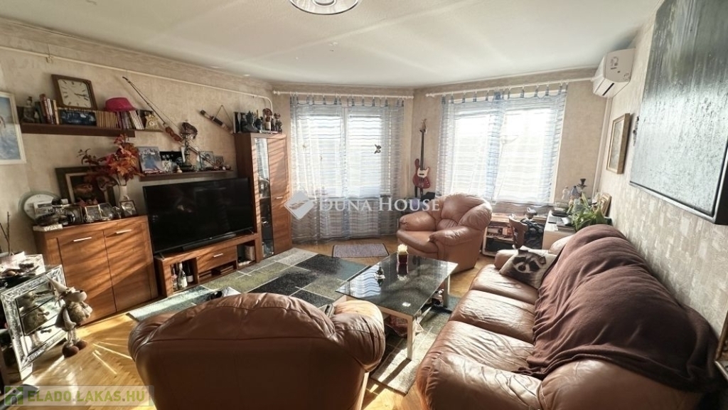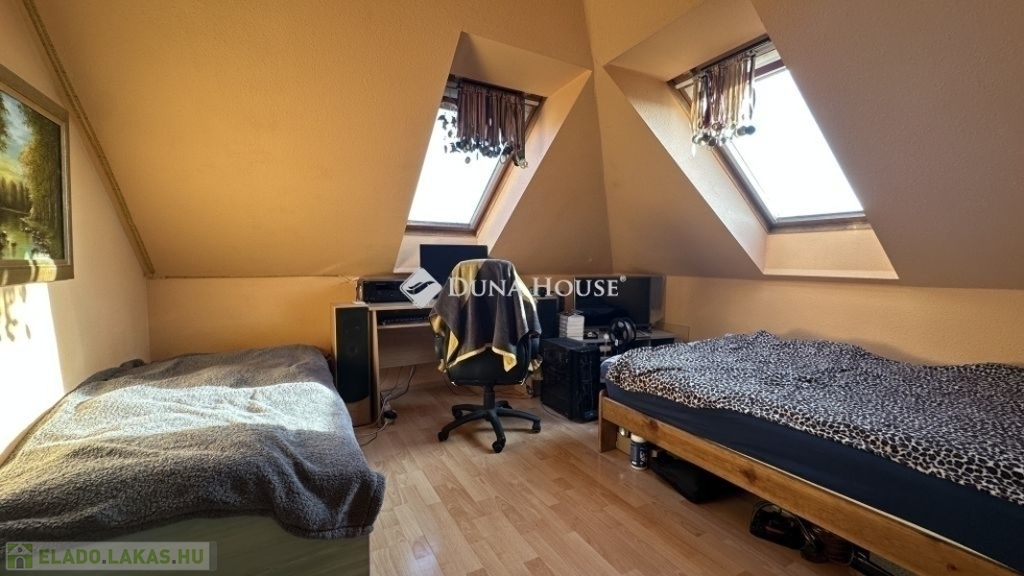 A helyiségek: 4 szoba, két fürdőszoba, külön WC, konyha+étkező, előtér, közlekedő és belső lépcső.