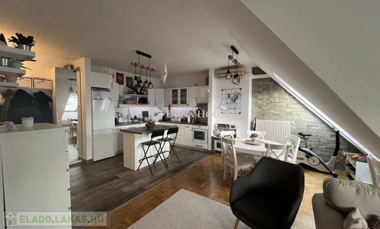 Tulajdoni lapon: 74 m², azonban a hasznos élettér a tetőtéri adottságoknak köszönhetően ennél lényegesen több.