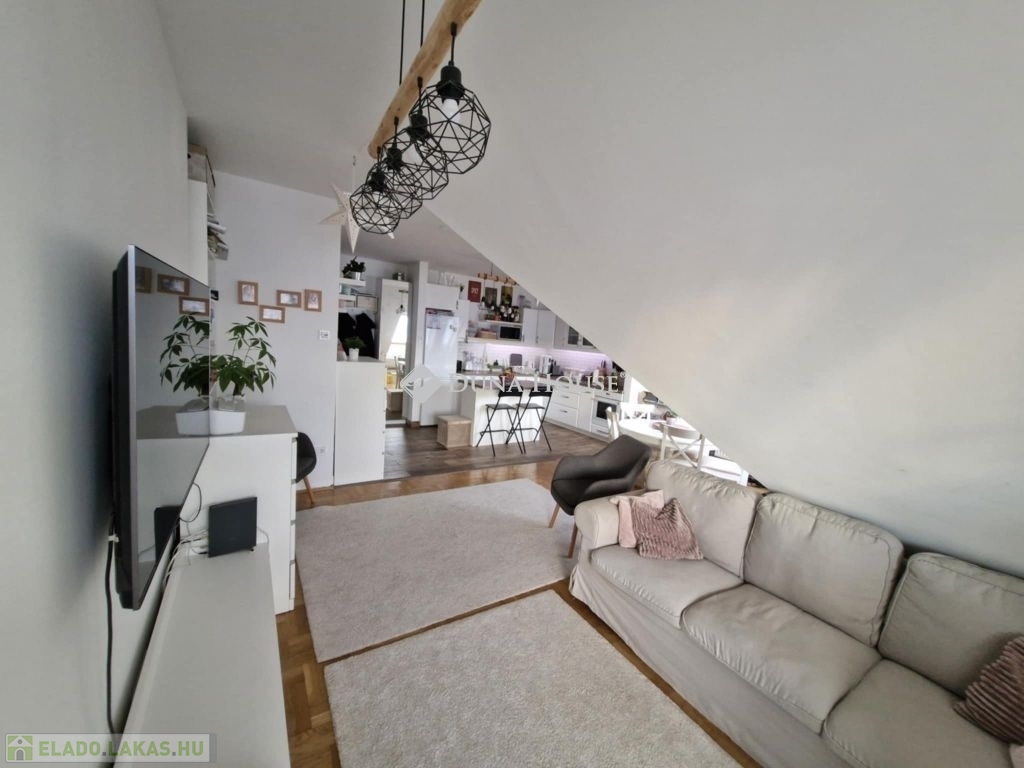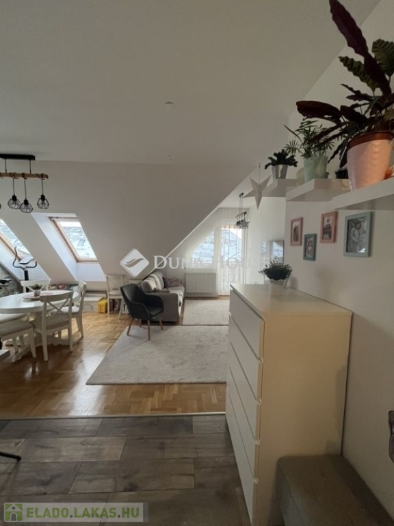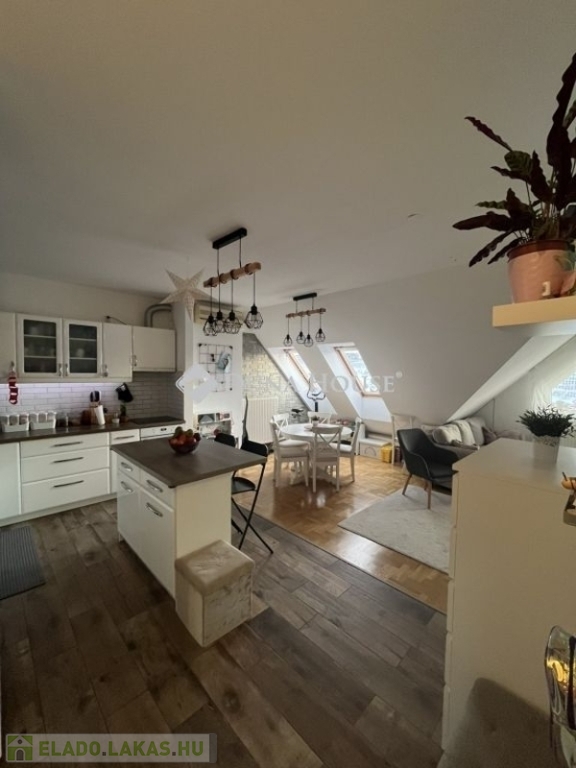 Tetőtéri elhelyezkedés egész nap világos, napfényes terek, a kialakítás miatt a térérzet a tulajdoni lapon szereplő méretnél nagyobb