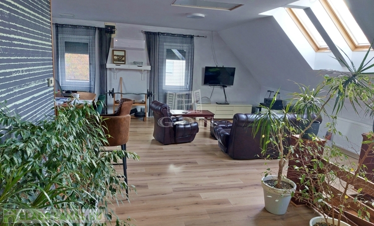 Újpest kertvárosi részén 81 nm hasznos alapterületű (bruttó 106 nm) jó állapotú tetőtéri tégla lakás eladó.