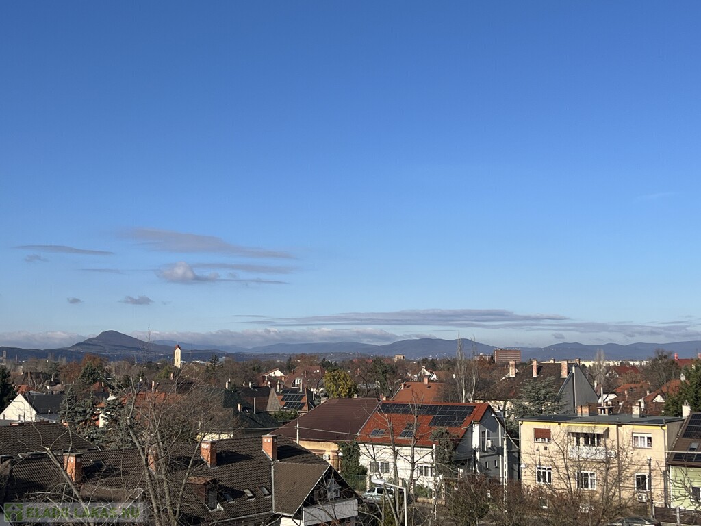 Az 55 m²-es terasz az év nagy részében túlzás nélkül valódi élettérként működik. Viszonylag intim, az utcáról nem látni fel rá, a szomszéd házak kellő távolságban vannak. A délelőtti nap a konyha felőli oldalra süt, a délutáni a szobák elé — évszaktól függően jól variálható a terasz használata. A kilátás igazán szép, a szobák felöli oldalon a kertvárosra és a Budai hegyekre látunk rá meglepően messzire. A kedvencünk pedig a terasz előtti nagy fa, aminek a lobkoronáját látjuk a szobákból is. Tettem fel a teraszról képeket a tavaszi időszakból is, az aktuális képek mellett.