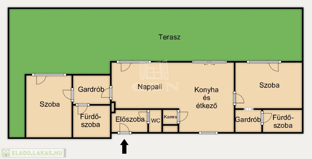 -Mindkét hálóhoz saját gardrób és külön fürdőszoba tartozik (egyik káddal, másik zuhanyzóval), valamint közvetlen teraszkijárattal
