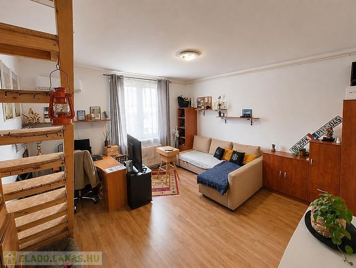 Csendes mellékutcában kínálunk megvételre egy tulajdoni lap szerint 27 nm-es, a valóságban nettó 45 nm-es, 2 szobás, beköltözhető állapotú, belső kétszintes téglalakást.