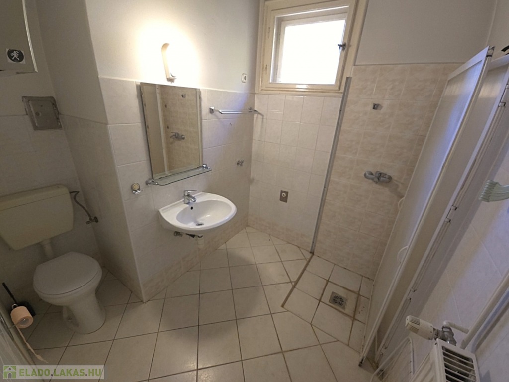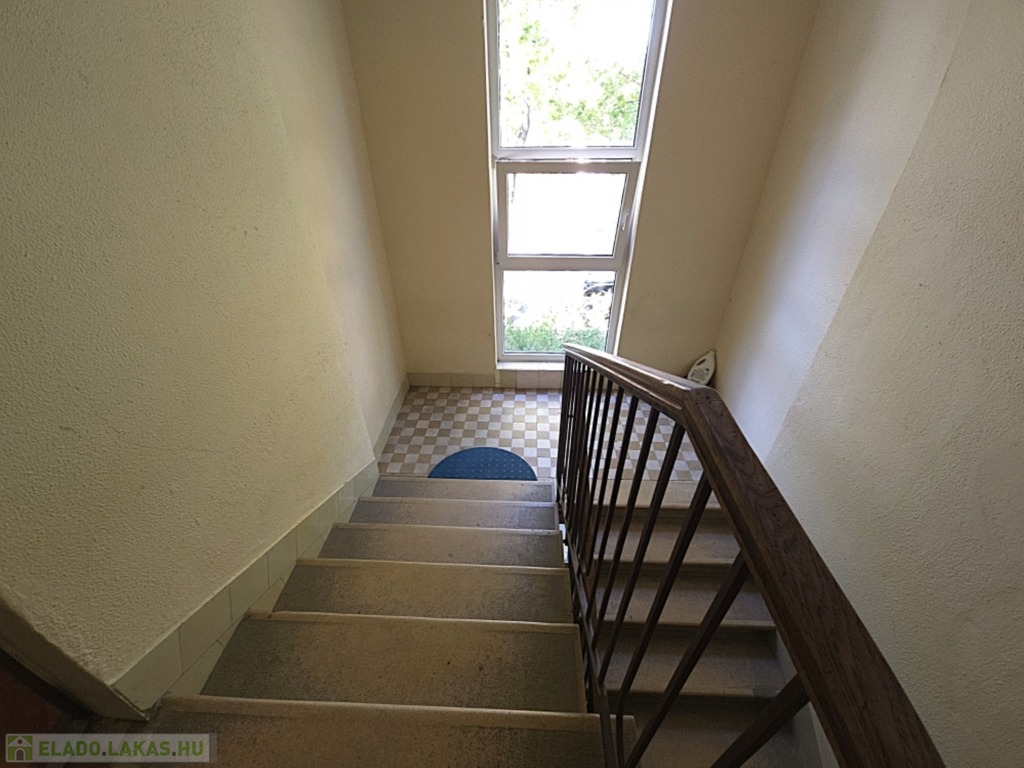 Ahogy belépünk a lakásba, egy tágas előszobába érkezünk, innen balra található a világos szoba, amely dupla rétegű fa nyílászárókkal, redőnnyel felszerelt, és egy hangulatos franciaerkély is kapcsolódik hozzá. Szemben helyezkedik el a fürdőszoba WC-vel , zuhanyzóval, míg jobbra fordulva jutunk el a konyhába, ahol szintén fa nyílászáró található. A konyhából nyílik a praktikus kamra. A lakáshoz tartozik még egy 6 nm-es saját pince, valamint egy 1 autó számára alkalmas garázs is.