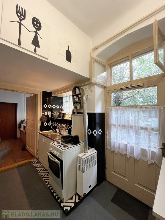 A lakás keleti fekvésű, belmagassága 3,15 méter, jelenlegi fűtését gázkonvektorok biztosítják. A nyílászárók műanyagok, 3 évvel ezelőtt cserélték őket. A konyha beépített bútorral rendelkezik, a fürdő zuhanyzós kialakítású. A lakáshoz praktikus kamra is tartozik, valamint 4 különálló udvari tároló és egy saját pincehelyiség is rendelkezésre áll.