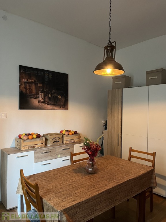 A lakás keleti fekvésű, belmagassága 3,15 méter, jelenlegi fűtését gázkonvektorok biztosítják. A nyílászárók műanyagok, 3 évvel ezelőtt cserélték őket. A konyha beépített bútorral rendelkezik, a fürdő zuhanyzós kialakítású. A lakáshoz praktikus kamra is tartozik, valamint 4 különálló udvari tároló és egy saját pincehelyiség is rendelkezésre áll.