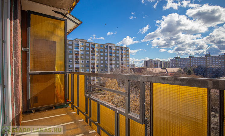 Eladó a IV. kerületben Újpest-központ városrészben a csendes Munkásotthon utcában egy jó állapotú, részben szigetelt panelházban lévő V. emeleti, 53nm-es, 2 szoba + konyhás, D-i fekvésű, napfényes lakás 4nm-es loggiával.