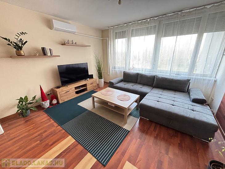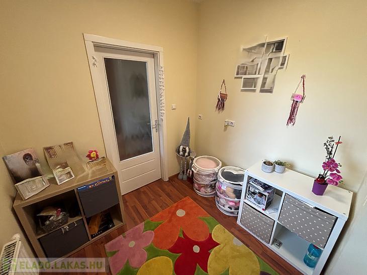 Az ingatlan jó állapotú, a szobák laminált parkettásak, a többi helyiség járólapos, a nyílászárók műanyag thermo üvegesek, redőnyösek. A konyhabútort, a fürdőszoba burkolatait és a beépített szekrényt kicserélték.