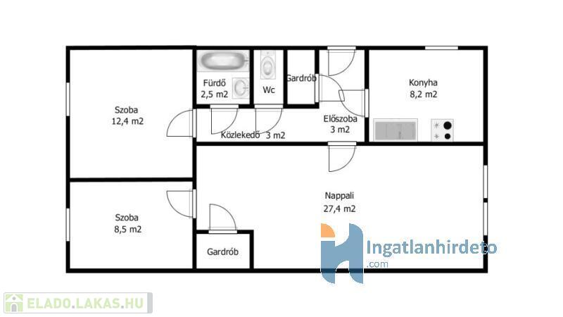 - újszerű, gépesített konyhabútor (tűzhely,elszívó, mosogatógép, mikró, hűtő, mosógép)