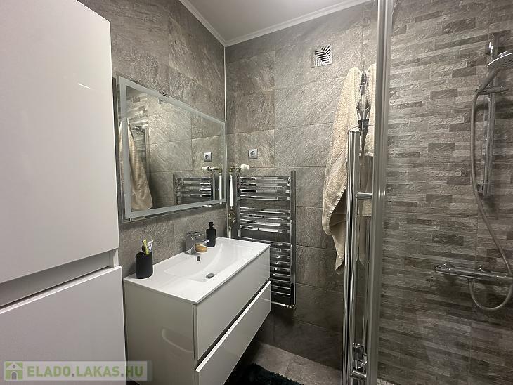 A lakás 3 évvel ezelőtt teljeskörű felújításon esett át, melynek keretein belül megtörtént a teljes víz és villanyhálózat korszerűsítése. Több ponton záródó biztonsági bejárati ajtót, modern beltéri ajtókat és sötétítővel felszerelt műanyag keretes, thermo üveges nyílászárókat építettek be. A szobákban laminált padlót helyeztek le, a többi helyiséget járólappal burkolták. A fűtőtestek cseréje is megtörtént, új lapradiátorokat szereltek fel. A nappaliba a nagyobb komfortérzet kialakításának érdekében egy hűtő-fűtő inverteres légkondicionáló berendezést is felszerelésre került. Konyhája ablakos, világos, a konyhabútor a vételár részét képezi. A vételár továbbá tartalmazza a lakás teljes bútorzatát, gépesítéssel együtt.