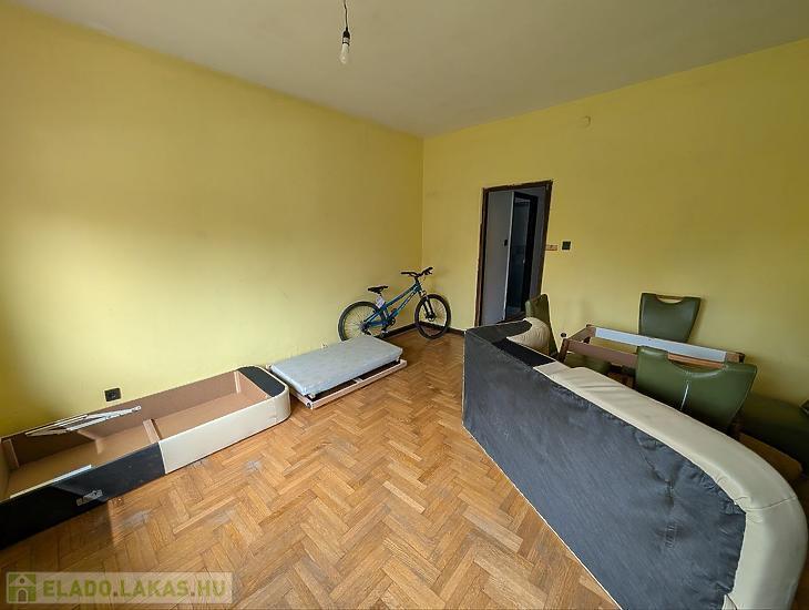 A lakás egy kétszintes ház földszinti része (tulajdoni hányadi megosztásban van jogilag).