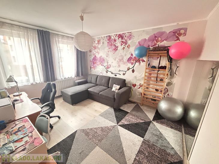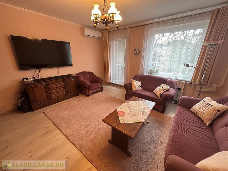 Az ingatlan jó-felújított állapotú, a villany-vezetékeket részben áthúzták alumíniumról rézre, új biztosító dobozt szereltek fel. Az ablakok műanyag thermo üvegesek (konyhában és a kisebb szobában fa típusú thermo üvegesek, hálóban redőnyös). A szobák laminált parkettások, a többi helyiség járólapos, a a wc és a fürdőszoba új burkolatot, kádat és szanitereket kapott. A konyhabútort, a víz-vezetékeket, a belső ajtókat és a radiátorokat kicserélték. A bejárati ajtó több ponton záródó, biztonsági. Tehermentes!