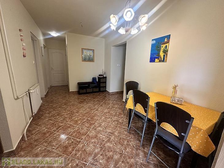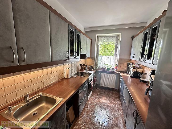 A lakás jó állapotú, a nyílászárók fa típusú thermo üvegesek, redőnyösek, a szobák laminált parkettásak, a többi helyiség járólapos. A konyhabútort kicserélték, a fürdőszoba új burkolatot kapott. A beépített bútorzat a vételár részét képezik.