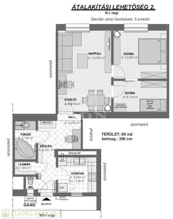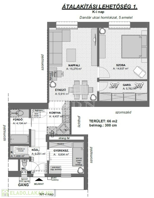 A lakás 2 tágas szobával rendelkezik, emellett található benne egy külön helyiség, amely jelenleg többféle funkciót is betölthet: lehet dolgozószoba, gardrób vagy akár étkező – a kialakítás teljes mértékben az új tulajdonos igényeihez igazítható. Ez a rugalmasság különösen vonzóvá teszi a lakást azok számára, akik szeretnék saját életstílusukra szabni otthonukat.