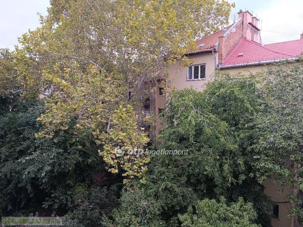 Konyhából nyíló 1,5 m2-es erkély zöld, fás belső udvarra néz
