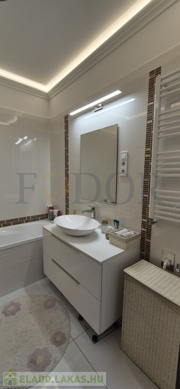 Az eredeti alaprajz szerint a lakás két fürdőszobával lett megtervezve, azonban a jelenlegi tulajdonosok a szülői hálószobához tartozó fürdőhelyiséget praktikus gardróbszobává alakították. A víz- és szennyvízkiállások azonban megmaradtak, így igény esetén a második fürdőszoba könnyedén visszaállítható.