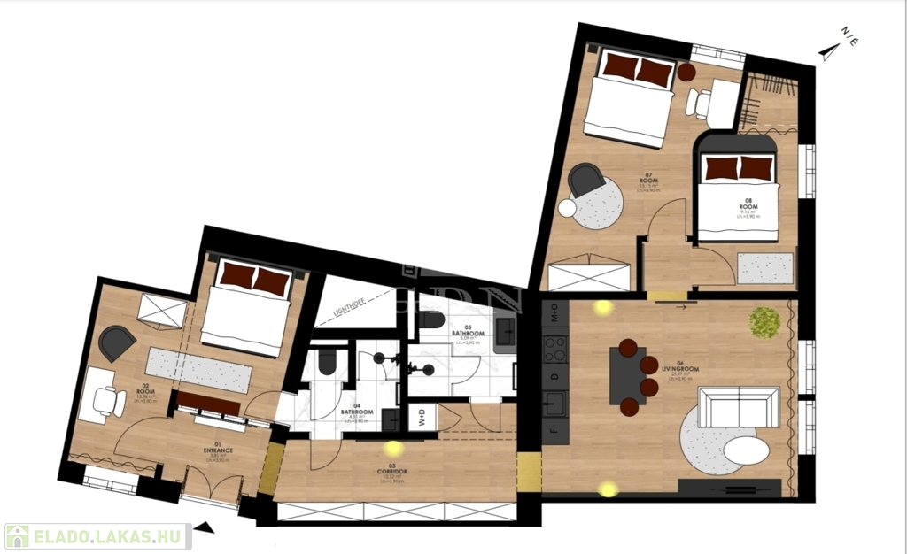 A lakás a III. emleten található, K-i fekvésű, világos.