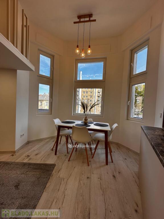 IX. kerület, Haller parknál ELADÓ 108 m2, I. emeleti lakás, melyben 3 db egyedi, különálló, berendezett, gépesített garzonlakás került kialakításra. Ez a lakás tökéletes választás befektetésnek. Az épület külső homlokzata és a pince is felújítása már megtörtént, a közös területeken pedig a villany-, víz- és gázhálózat is megújult. A lift és a belső udvar tovább növeli a lakók kényelmét. A 3 lakrész ügyvédi megosztással rendelkezik. A lakások felszereltsége: - Konyhabútor, kanapé, asztal, étkező és franciaágy, - Teljes gépesítés (Ariston Wellis Evo boylerrel), - Hűtő-fűtő klíma, - Norvég fűtőpanel. A három kialakított lakás: 1-es számú lakás: 35 m2, plusz 3 m2 erkély és 5 m2 galéria, 2-es számú lakás: 38 m2, plusz 5 m2 saját, zárható pincetároló és 5 m2 galéria, 3-as számú lakás: 35 m2 alapterület, plusz 5 m2 galéria, ez külön bejárattal rendelkezik.