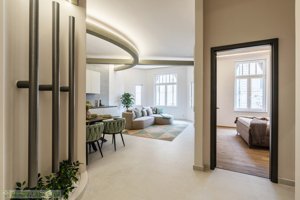 Eladó exkluzív, teljes körűen felújított designlakás a Ráday utcában – bútorozottan, azonnal költözhetően.