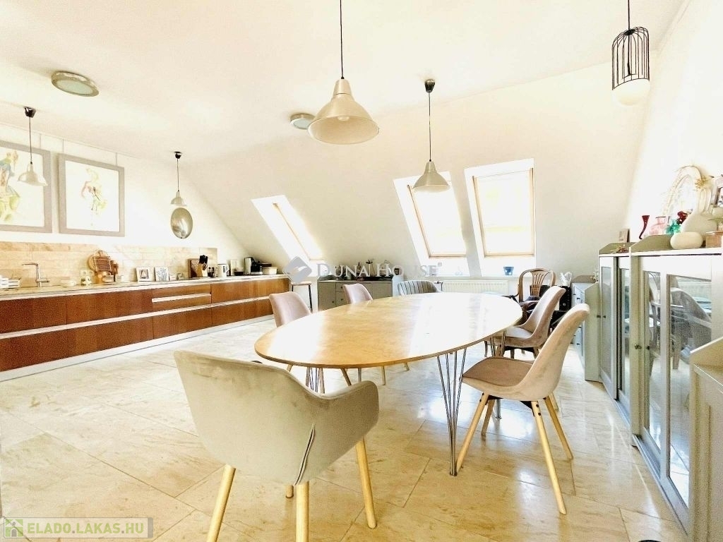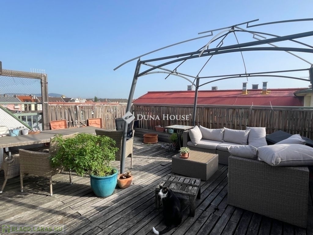 2000-es években épült hatemeletes társasházban található ez a belső kétszintes, napfényes lakás. Az ingatlan különlegessége a tetőterasznak köszönhető egyedülálló panoráma. A lenyűgöző kilátás mellett egy tágas és világos nappali biztosítja a családi és baráti összejövetelekhez a tökéletes helyszínt.