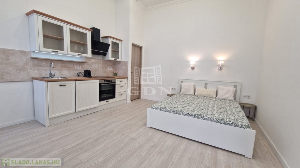 28 nm alapterület: közlekedő, WC, kamra, amerikai konxhás nappali szoba, fürdőszoba