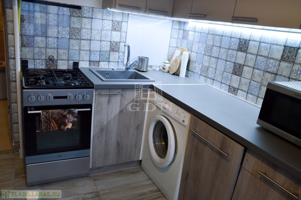 A lakás egy 7. emeleti panelépületben helyezkedik el, ahol a jó állapotú, felújított körülmények között van.