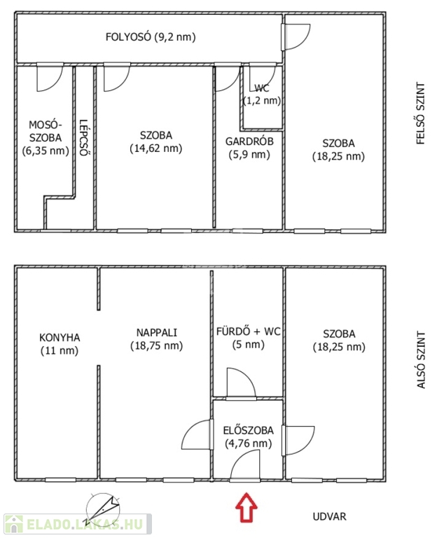 -Belmagasság: 5,2 m, tágas, levegős térérzet - alsó szint: 2,55 m, felső szint: 2,18 m.