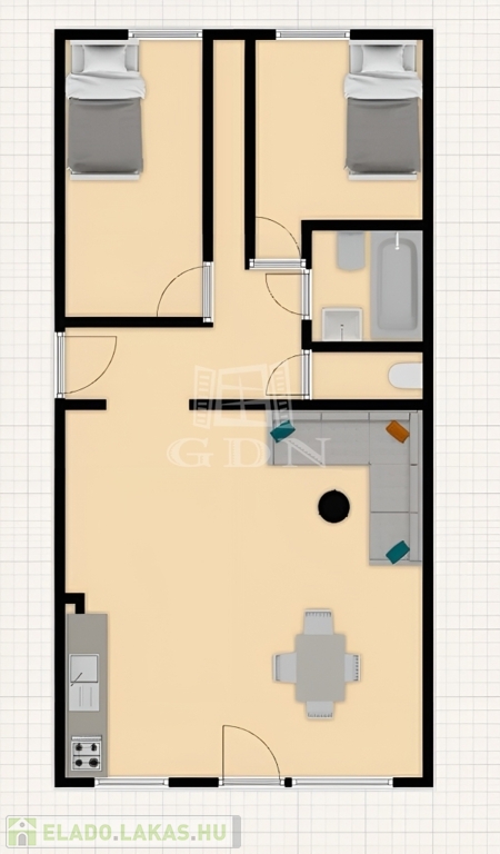A lakás 1 nagyszerűen használható és 2 kisebb szoba halmozza a praktikumot és kényelmet.