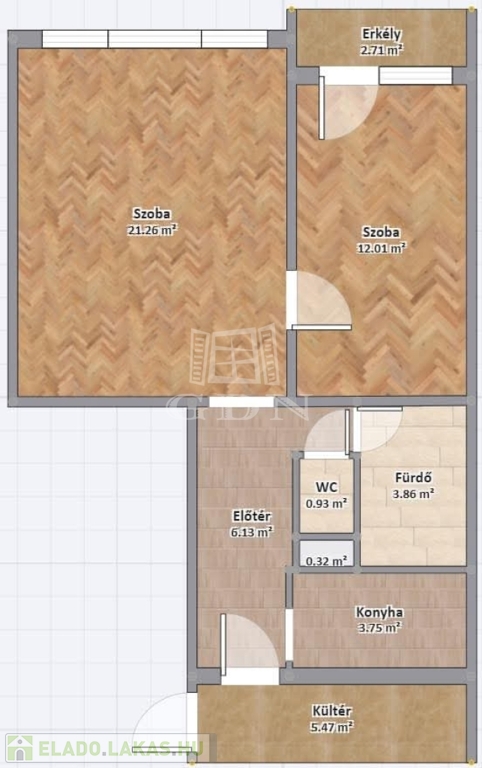 A lakás nem lépcsőházból nyílik, hanem zárható, közös kis erkélyről.