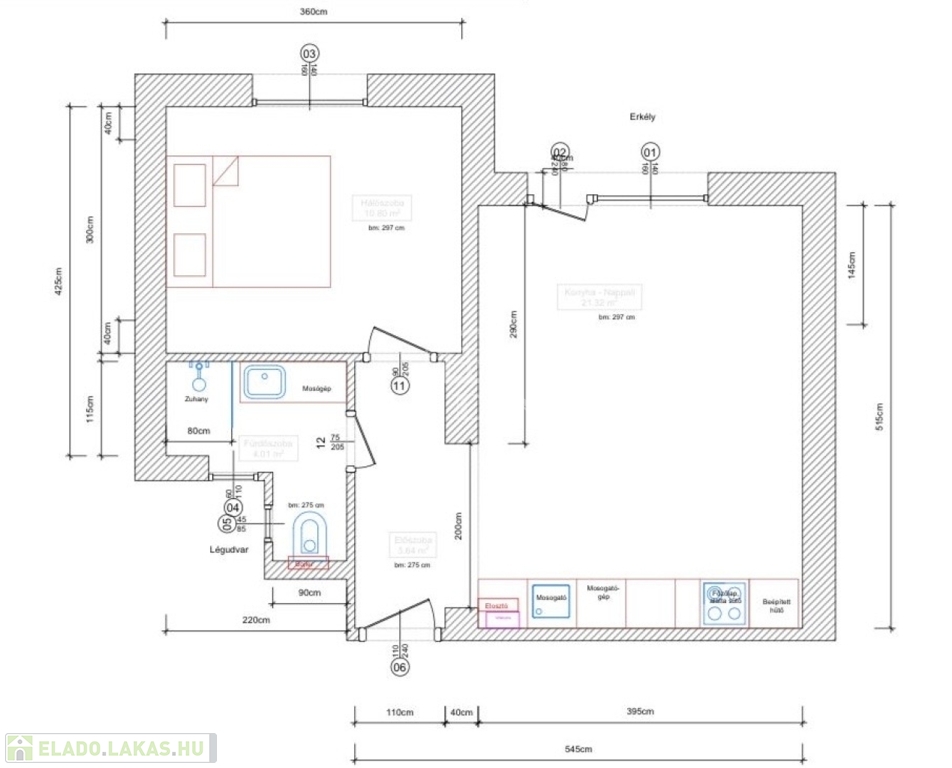 A lakás a harmadik emeleten helyezkedik el, és 38 négyzetméter alapterületű.