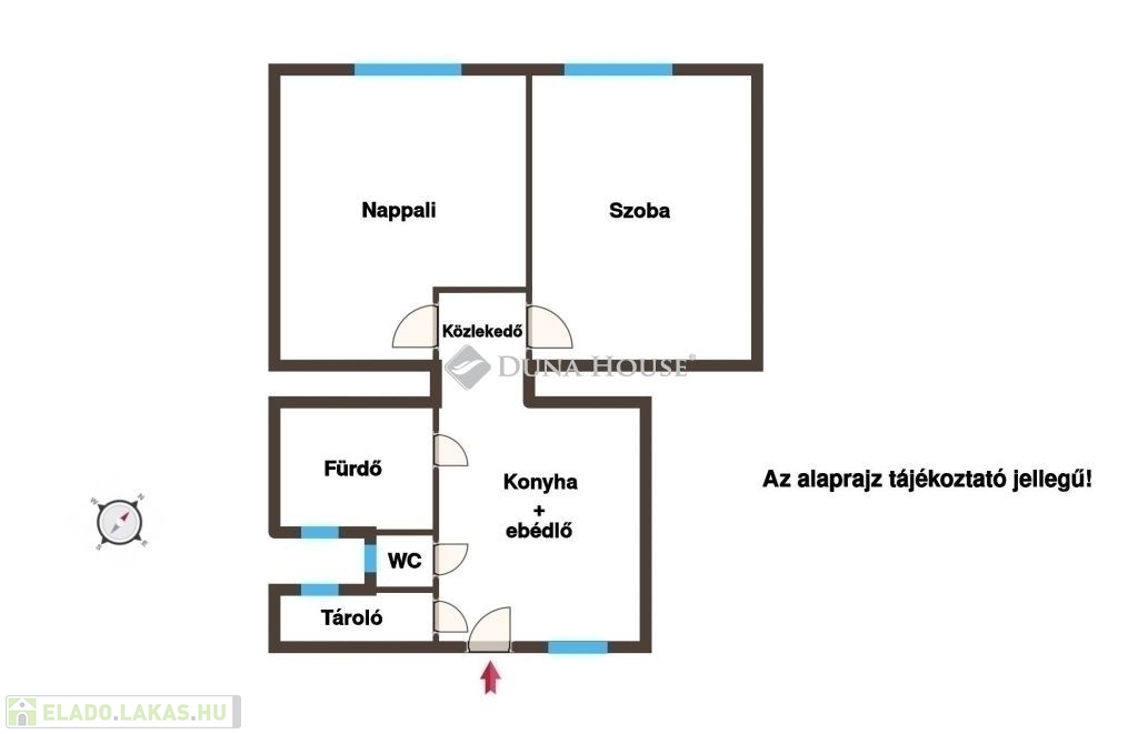 - 2 tágas, utcára néző szoba, ÉNy-i tájolással