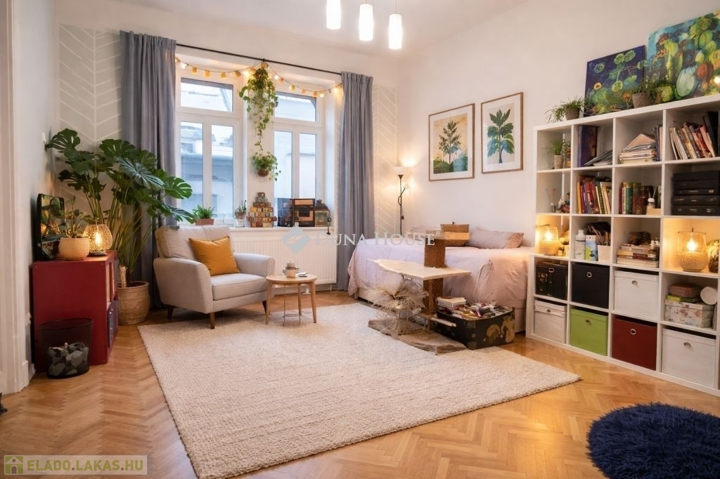 Világos, stílusos otthon a IX. kerület szívében Angyal utcában! Budapest 9. kerületében, az Angyal utcában, kiváló elhelyezkedéssel és remek közlekedés mellett kínáljuk ezt a 3. emeleti, utcai fekvésű, felújított, cirkófűtéses, két szobás lakást.Az ingatlan tágas, világos terekkel várja új tulajdonosát, ahol a napfény természetes módon tölti meg az otthont. A hangulatos étkező-konyha ideális helyszíne a közös reggeliknek vagy baráti vacsoráknak.A lakás három éve teljeskörű felújításon esett át, így az új lakónak már csak költöznie kell. A jelenleg egybenyíló két szoba kisebb átalakítással két különnyíló szobává alakítható, így kiváló választás lehet pároknak, családoknak vagy akár befektetésnek is. Kiváló lokáció Jó közlekedés Felújított, azonnal költözhető Világos, barátságos terek Bright & Stylish Apartment in the Heart of District IX Angyal Street Located in Budapests 9th district, on the popular Angyal Street, this renovated, street-facing, 3rd floor, two-room apartment is offered for sale in an excellent location with outstanding public transport connections.The apartment features spacious, light-filled interiors, creating a welcoming and comfortable atmosphere. The cozy dining kitchen is perfect for everyday meals or entertaining friends.The property underwent a full renovation three years ago, so it is in excellent condition and ready to move into. The two rooms are currently interconnected, but with a minor modification they can easily be converted into two separate rooms, making the layout highly flexible.The apartment is equipped with gas central heating (cirko system), ensuring efficient and comfortable heating throughout the year. Prime location in Ferencváros Excellent public transport connections Renovated, move-in ready Bright, spacious living areasAn ideal choice for couples, small families, or investors looking for a well-located, easily rentable property in one of Budapests most sought-after districts.