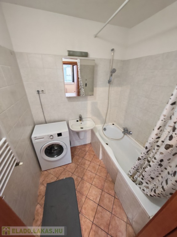 A fürdőszoba és a WC külön helységben van, a fürdőben mosógép.