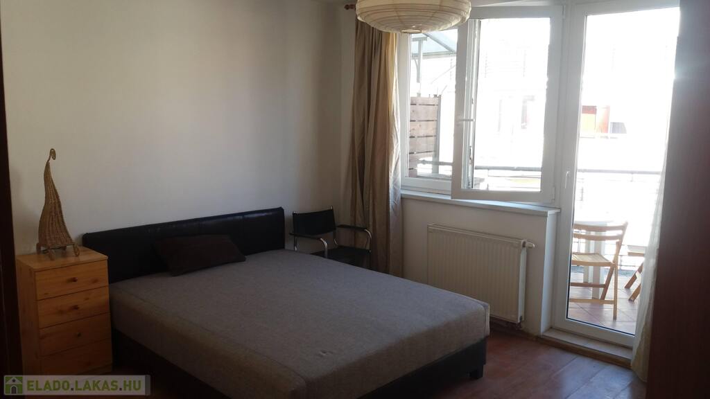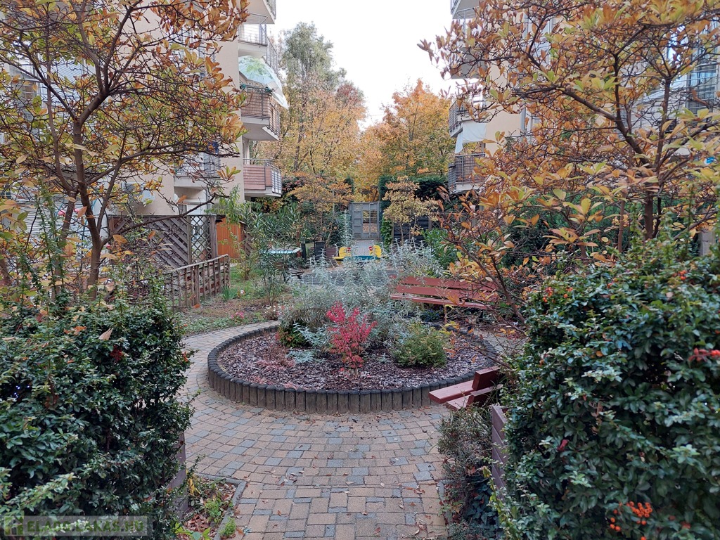 A lakás teljes hosszában futó nagy terasz igazi extra: grillezéshez, beszélgetésekhez és pihenéshez kiváló. A belső kertre néz, két napellenző gondoskodik a kellemes árnyékról.