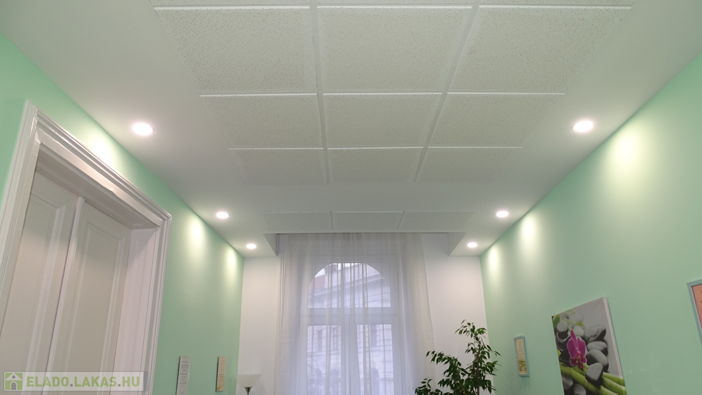 A villanyhálózat, a burkolatok, a nyílászárók cserélve lettek. Álmennyezetbe szerelt világítás van az ingatlanba, így az eredeti 3.60m belmagasság 3 m-re csökkent. Ezzel a megoldással sokkal esztétikusabb lett ( szerelés tekintetében mindenképpen hasznos) és a fűtés-hűtés esetén kevesebb teret szükséges temperálni, amellett hogy a térérzet teljesen megmaradt.