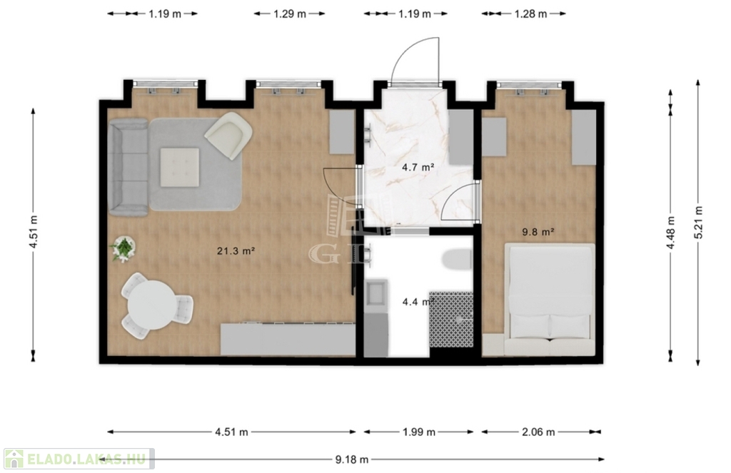 Az ingatlan 39 m²-es, kiváló elosztású, modern polgári lakás.