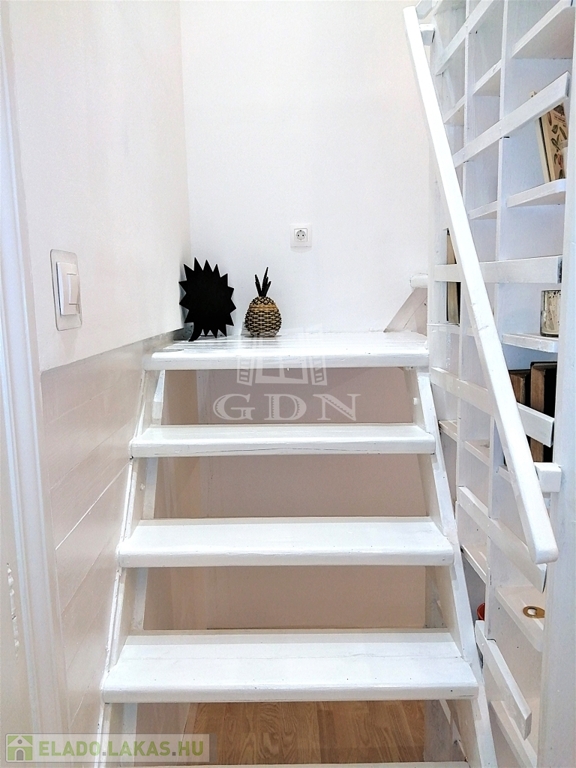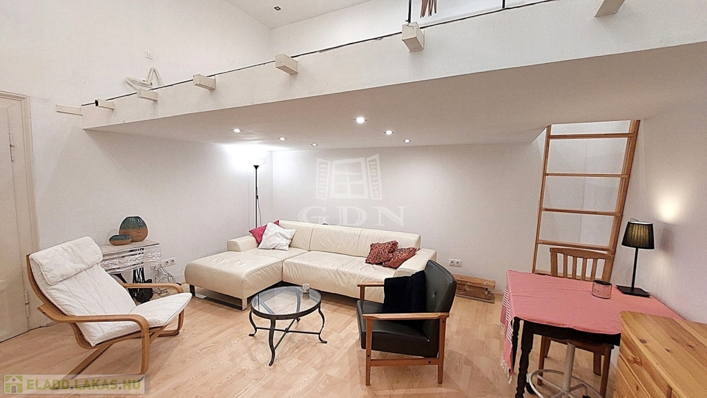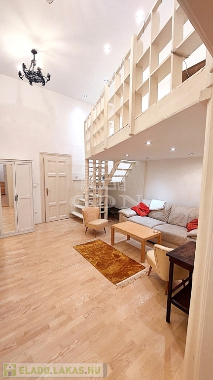 A Belgrád rakpart patinás, rendezett, kis lakóközösségű, az 1860-as években épült épületének első emeletén található ez a különleges, 64 m²-es (tulajdoni lapon 62 m²), két állógalériával (+20 m²) bővített lakás. Az ingatlan impozáns, 4,2 méteres belmagassága, valamint a galériák feletti 1,9 méteres belmagasság tágas, levegős érzetet biztosít.
