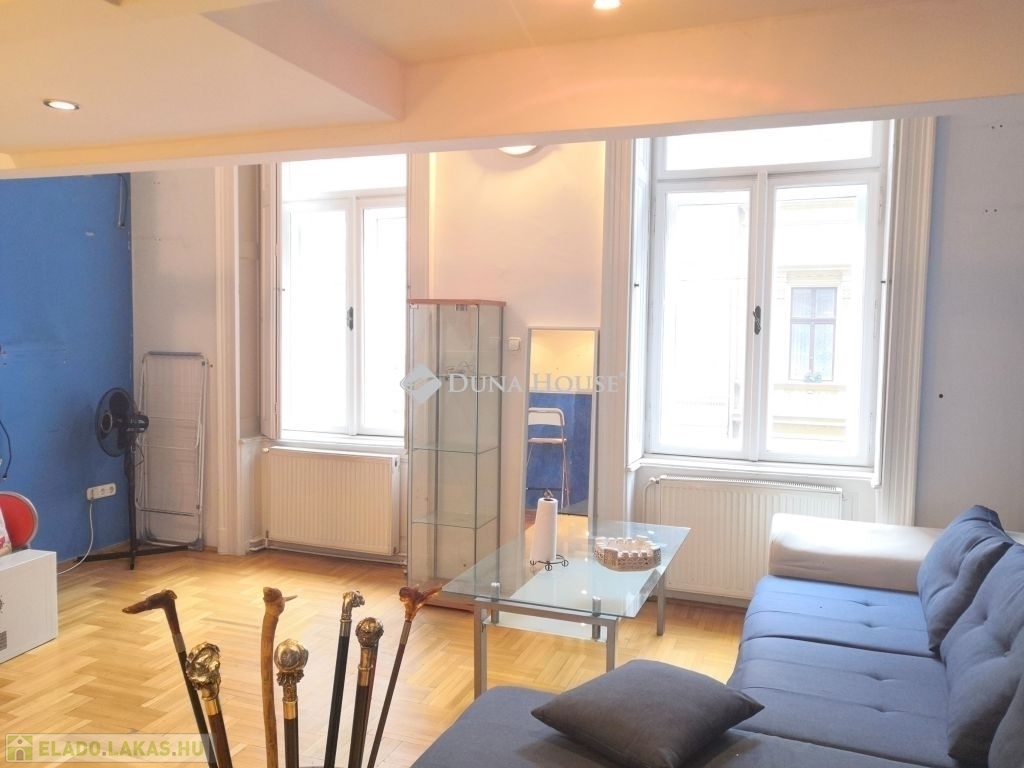 V. kerületben, a Nyugati pályaudvartól karnyújtásnyira, kívül-belül szép állapotú, liftes polgári társasház 1. emeletén eladó egy csendes utcára néző, 51m2-es, dupla galériás (a galéria területe nincs beleszámolva az 51m2-be, ezekkel együtt 82m2 terület áll rendelkezésre), cirkófűtéses, tágas tereket kínáló, jó állapotú lakás.