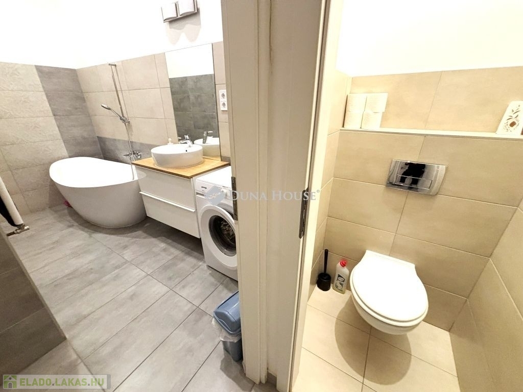 74 nm alapterületű, nappali + 2 hálószobás lakás, ami 2018-ban teljeskörű felújításon esett át, akkor nyerte el jelenlegi formáját, elrendezését, igényes burkolatokkal, beépített konyhai gépekkel. Ez a gyönyörű lakás nem csak a kivételes elhelyezkedésével, hanem a modern kialakításával, gazdaságos gáz cirkó fűtési rendszerével és a klimatizált nappalival is kitűnik.