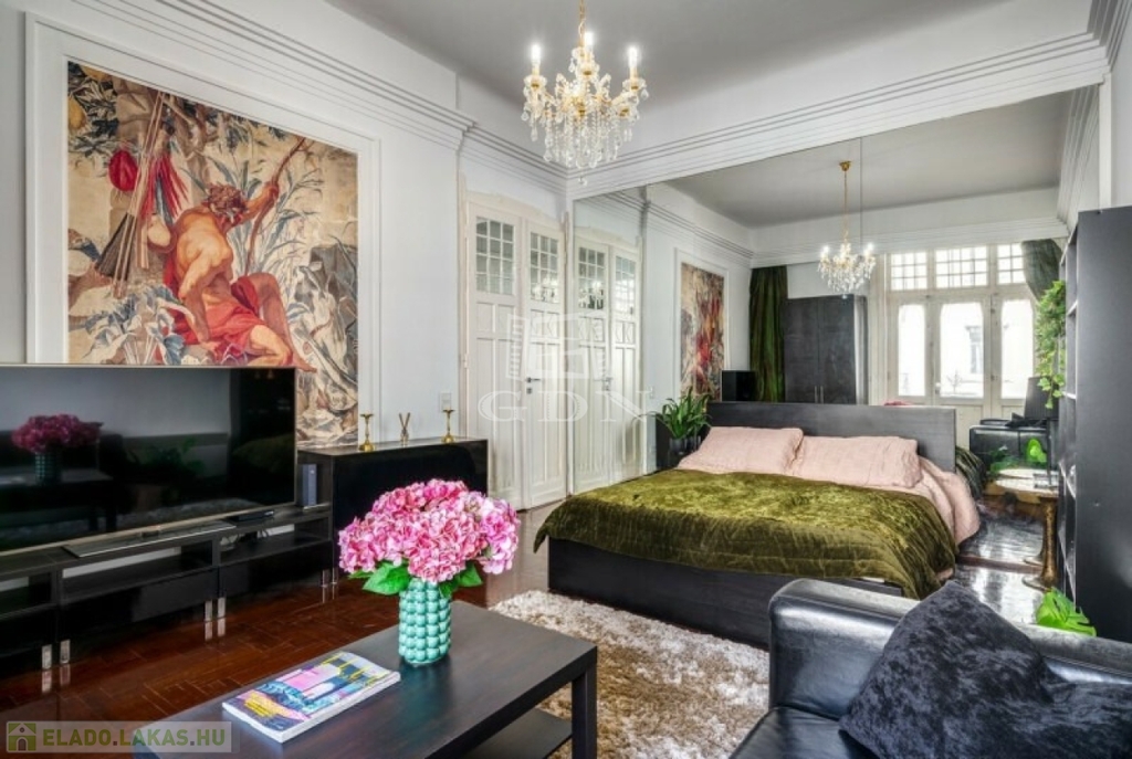 A lakás a belváros egyik legszebb részén található, ahol a történelmi környezet és a modern kényelem találkozik.