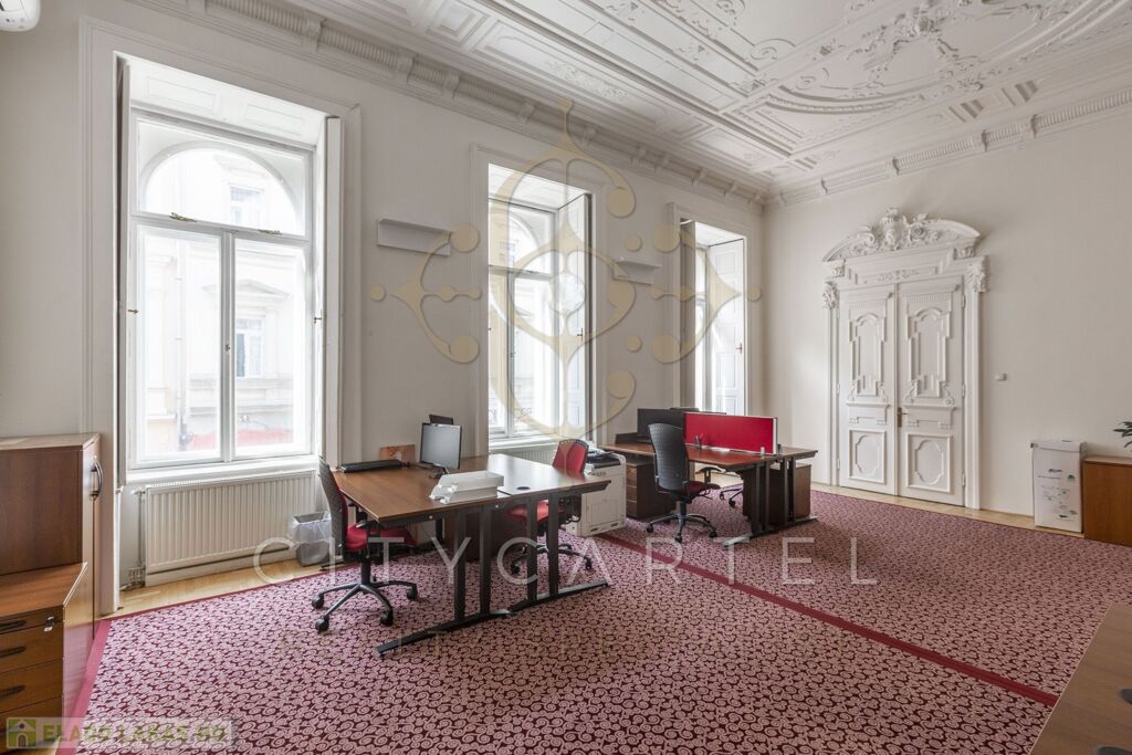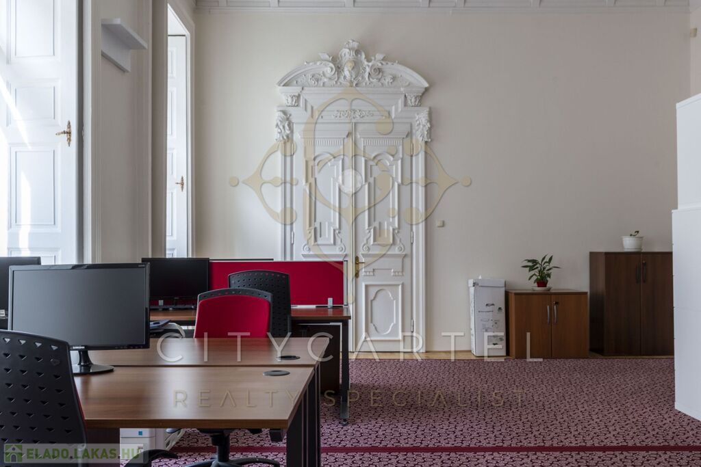 Az első emeleti, impozáns ingatlan rendkívül világos és tágas, kifinomult részletekkel díszített belső terekkel rendelkezik. Körbejárhatósága és két külön bejárata lehetőséget biztosít akár két szeparált iroda kialakítására is.