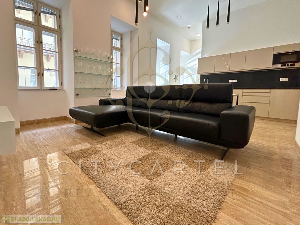 Az V. kerületben, a BELVÁROS SZÍVÉBEN egyik EXKLUZÍV apartmanházában egy 76 nm-es, belső kétszintes, amerikai konyhás nappali + 2 hálószobás kiváló elosztású 1. emeleti lakás, liftes épületben ELADÓ