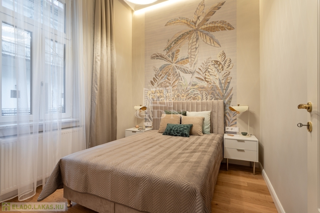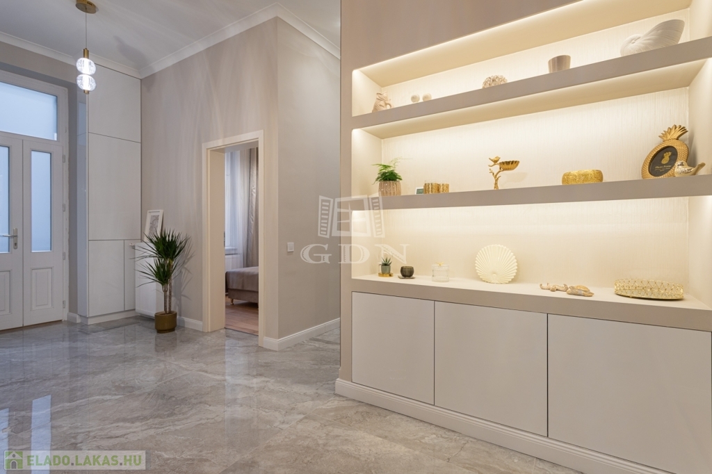 A lakás egy díszes, nagypolgári, dupla liftes társasház 3. emeletén található, ahol a klasszikus elegancia tökéletesen találkozik a modern kényelemmel.
